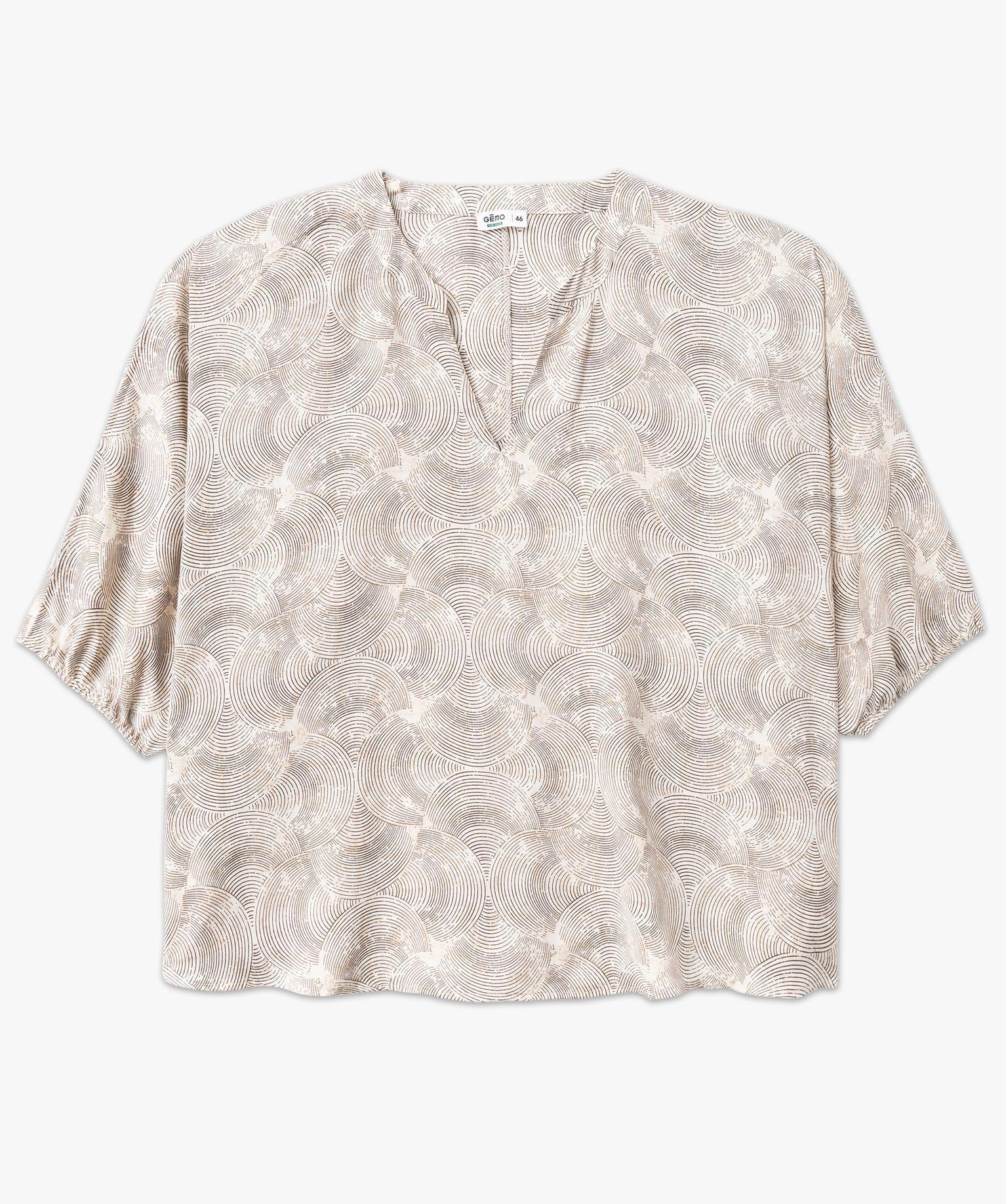 Blouse imprimée manches chauve-souris femme grande taille ecru