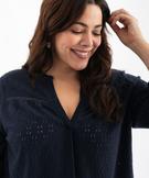 Blouse manches 3/4 en maille ajourée femme grande taille[MISSING] bleu fonce