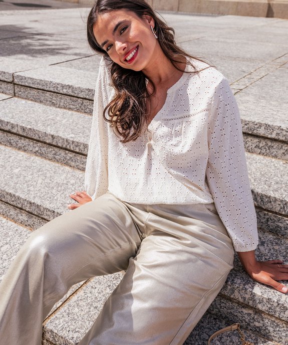 Blouse manches 3/4 en maille ajourée femme grande taille blanc chine