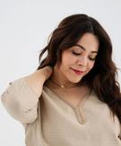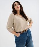 Blouse manches 3/4 en maille fluide et col V femme grande taille beige