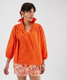 Blouse manches 3/4 en toile de coton unie femme orange