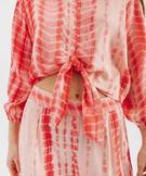 Blouse manches 3/4 fluide tie-and-dye à nouer femme orange