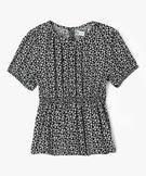 Blouse manches ballon à basque en viscose fleurie fille[MISSING] noir