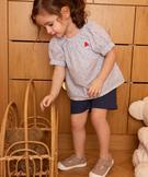 Blouse manches courtes à rayures et pois bébé fille - LuluCastagnette bleu ciel