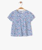 Blouse manches courtes ample et fluide à imprimé fleuri bébé fille bleu