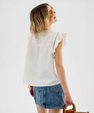 Cette jolie blouse en gaze de coton entrera dans la composition de nombreux looks d’inspiration bohème. Cette blouse pour femme est dotée de volants aux emmanchures soulignés par des détails ajourés brodés. Elle affiche des plis sur la poitrine et une encolure en V fermée par des liens aux finitions perles. Une blouse unie à la coupe ample, accentuée par de petites fronces dans le milieu du dos. Ce top confortable et possède un bas arrondi qui lui permet d’être portée par-dessus un pantalon ou une jupe longue.