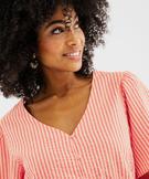 Laissez-vous charmer par cette superbe blouse féminine au style rétro. La blouse femme s'anime de rayures aux couleurs gourmandes et estivales ! Elle possède des manches courtes amples, et une fermeture par petits boutons sur l'avant. Courte, elle est dotée d'une basque dont vous pouvez augmenter ou réduire le volume à l'aide d'un lien coulissant à la taille. Sa matière légère et gaufrée, en seersucker, la rend idéale pour les beaux jours. Short en jean, pantacourt slim coloré, jupon ample... Vous allez adorer l'assortir avec toute votre garde-robe pour lui donner un style différent à chaque fois