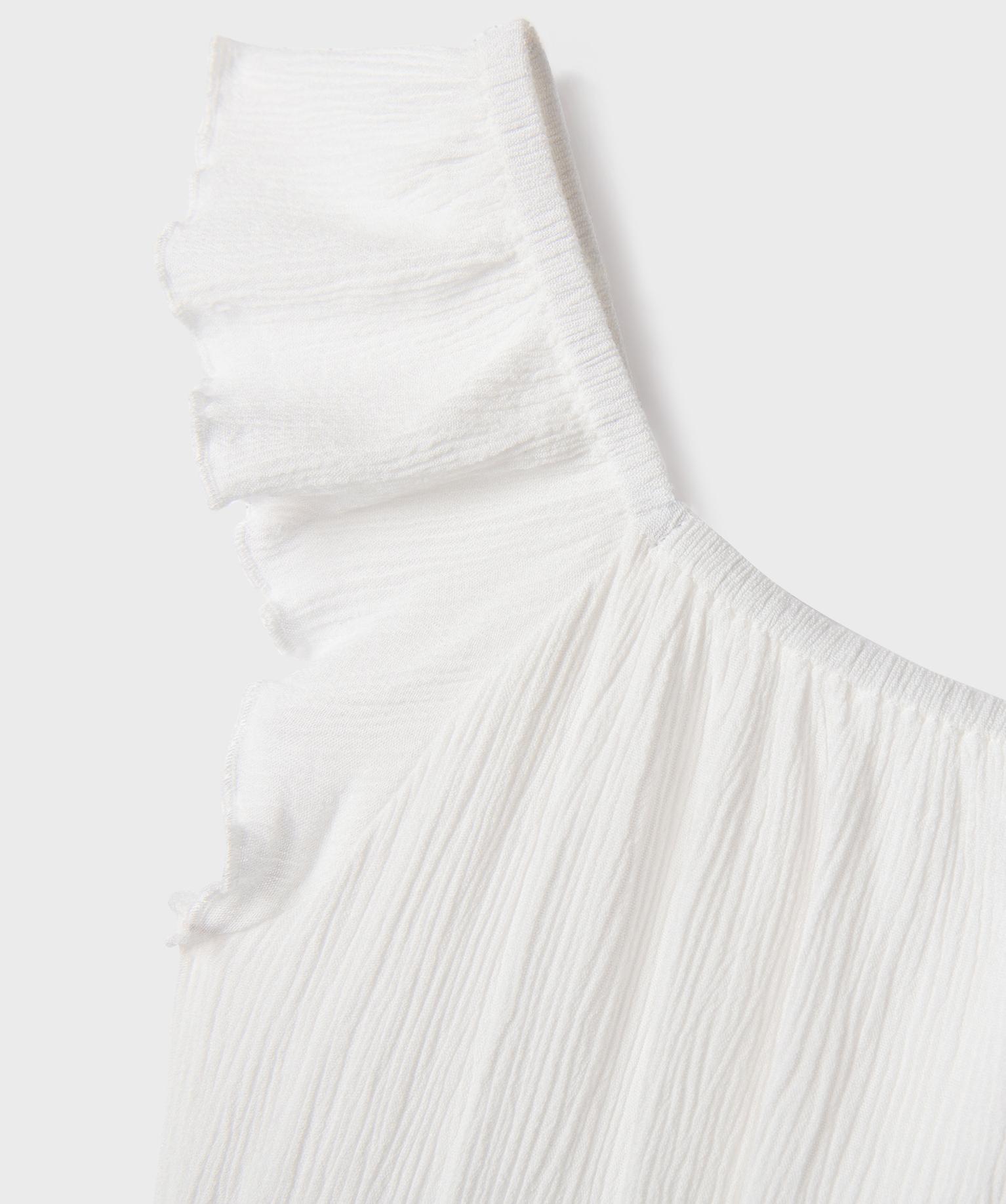 Blouse manches courtes en viscose à col Bardot fille blanc