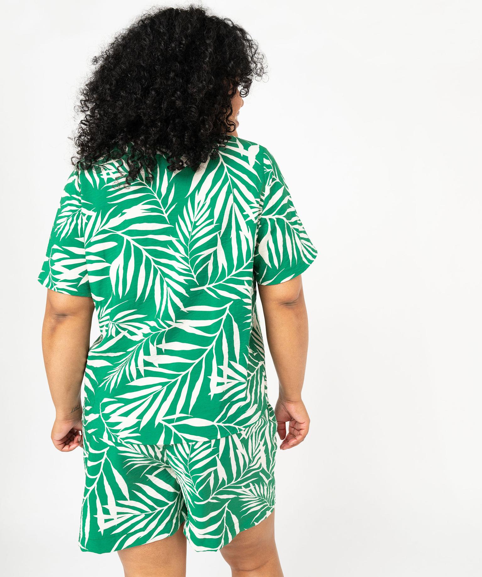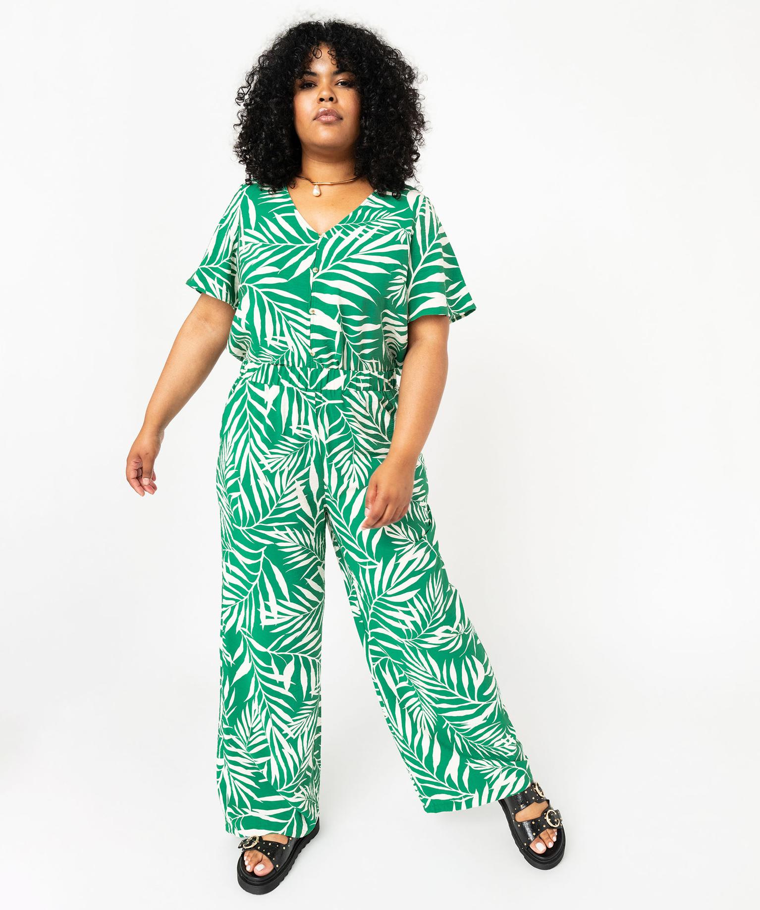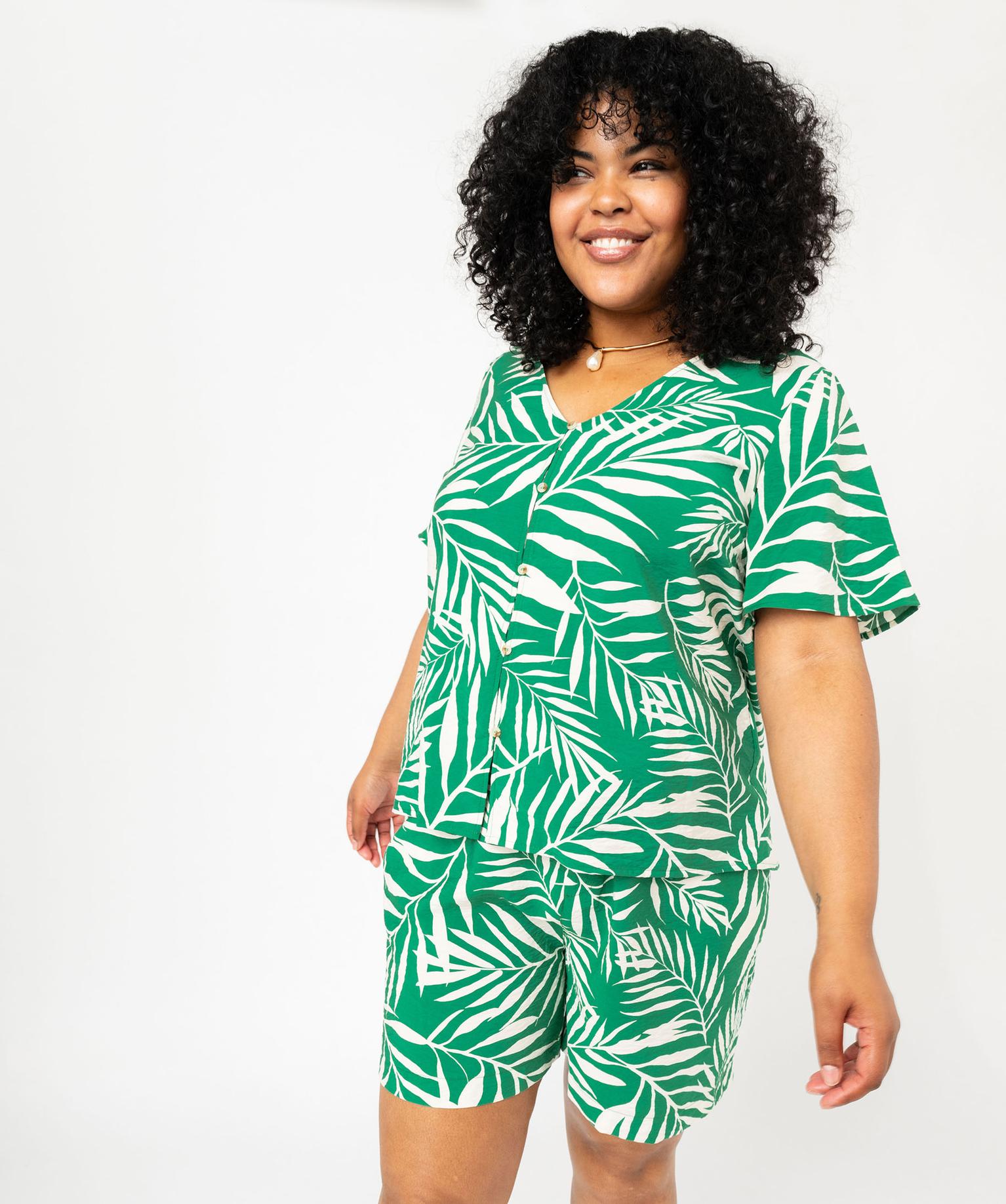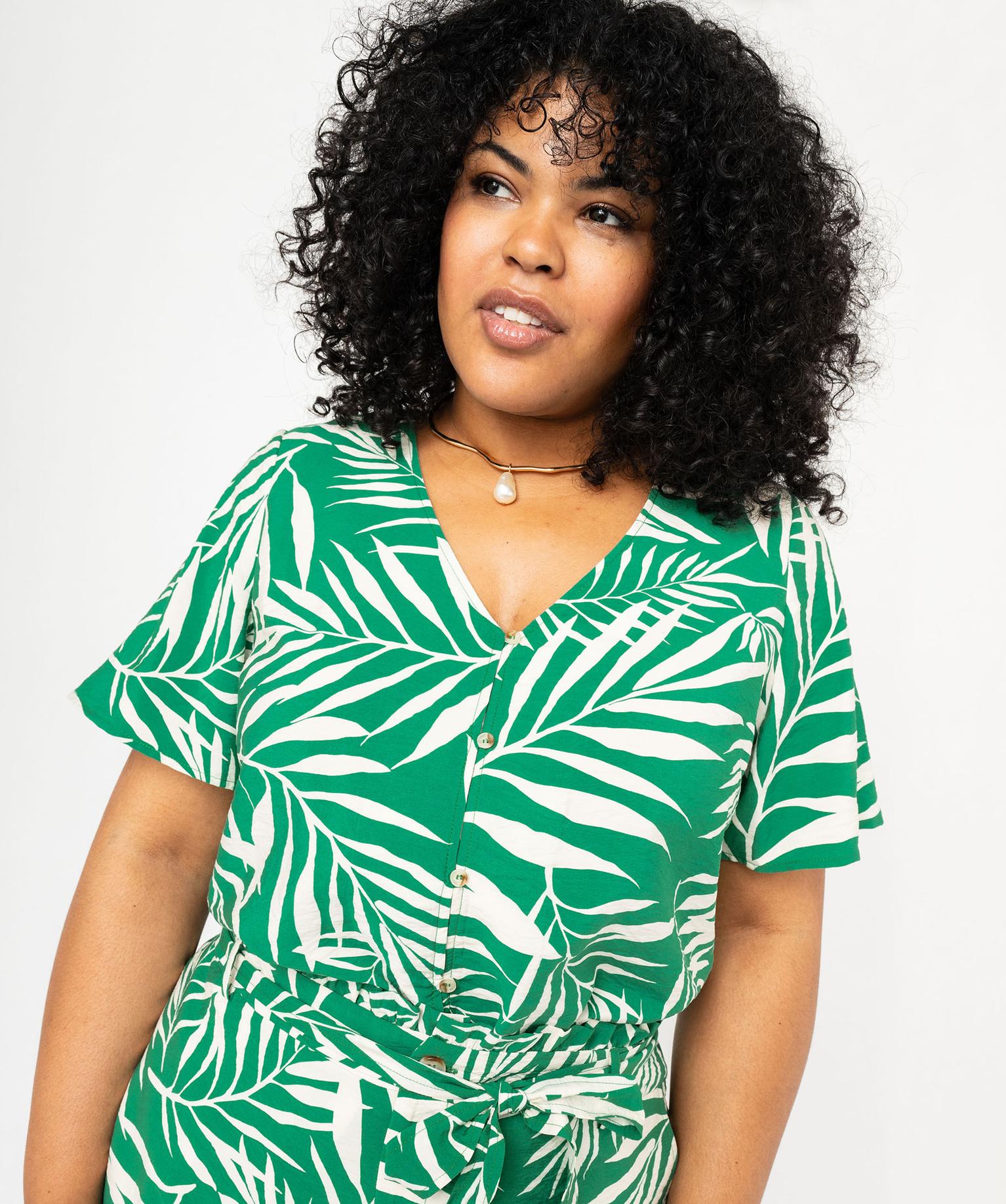 Blouse manches courtes fluide à col V et imprimé femme grande taille vert