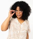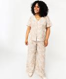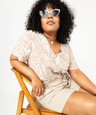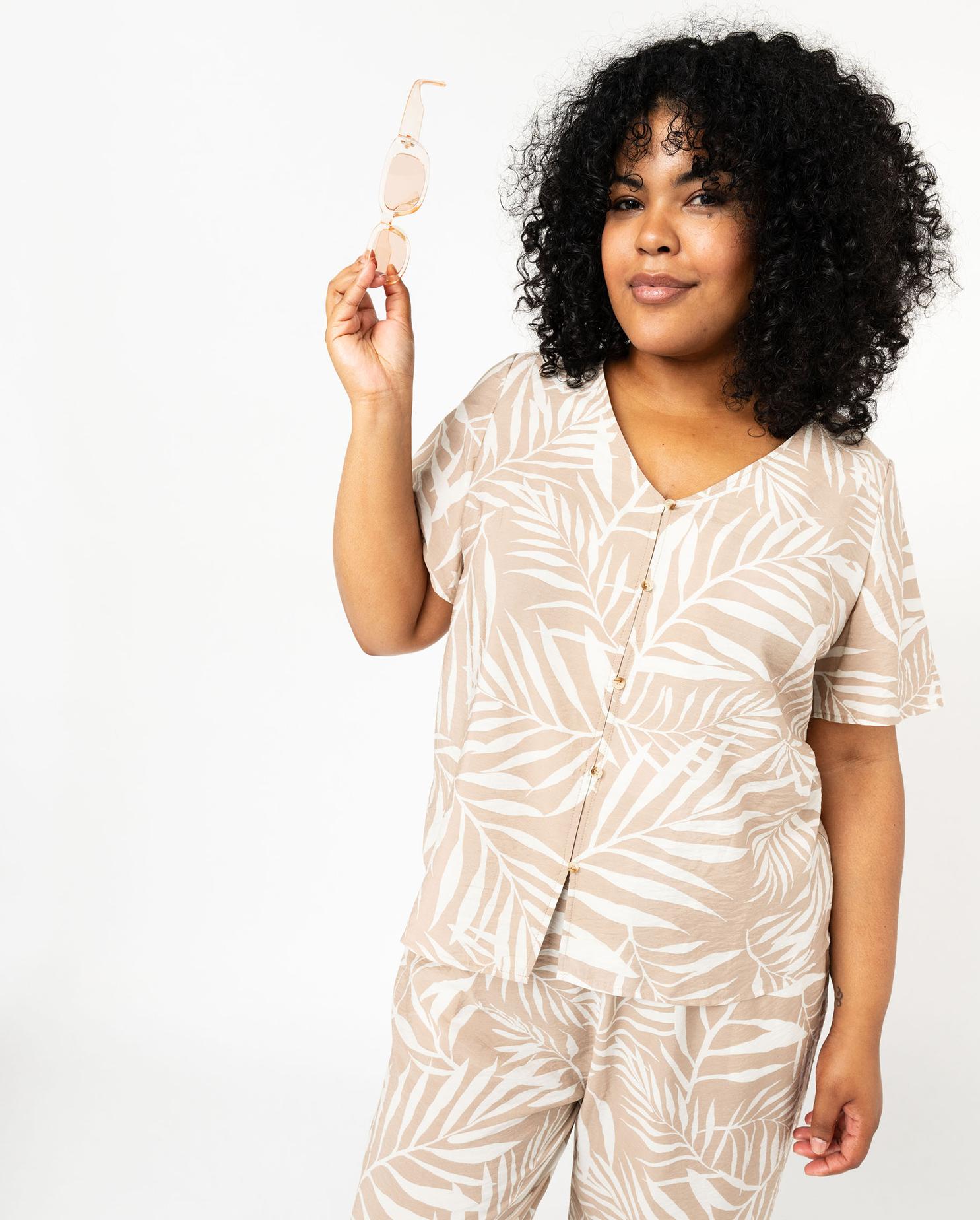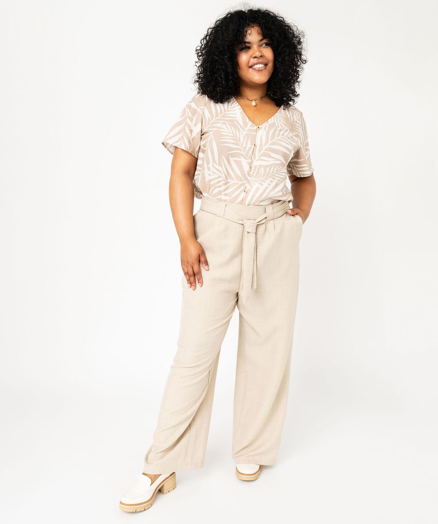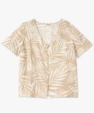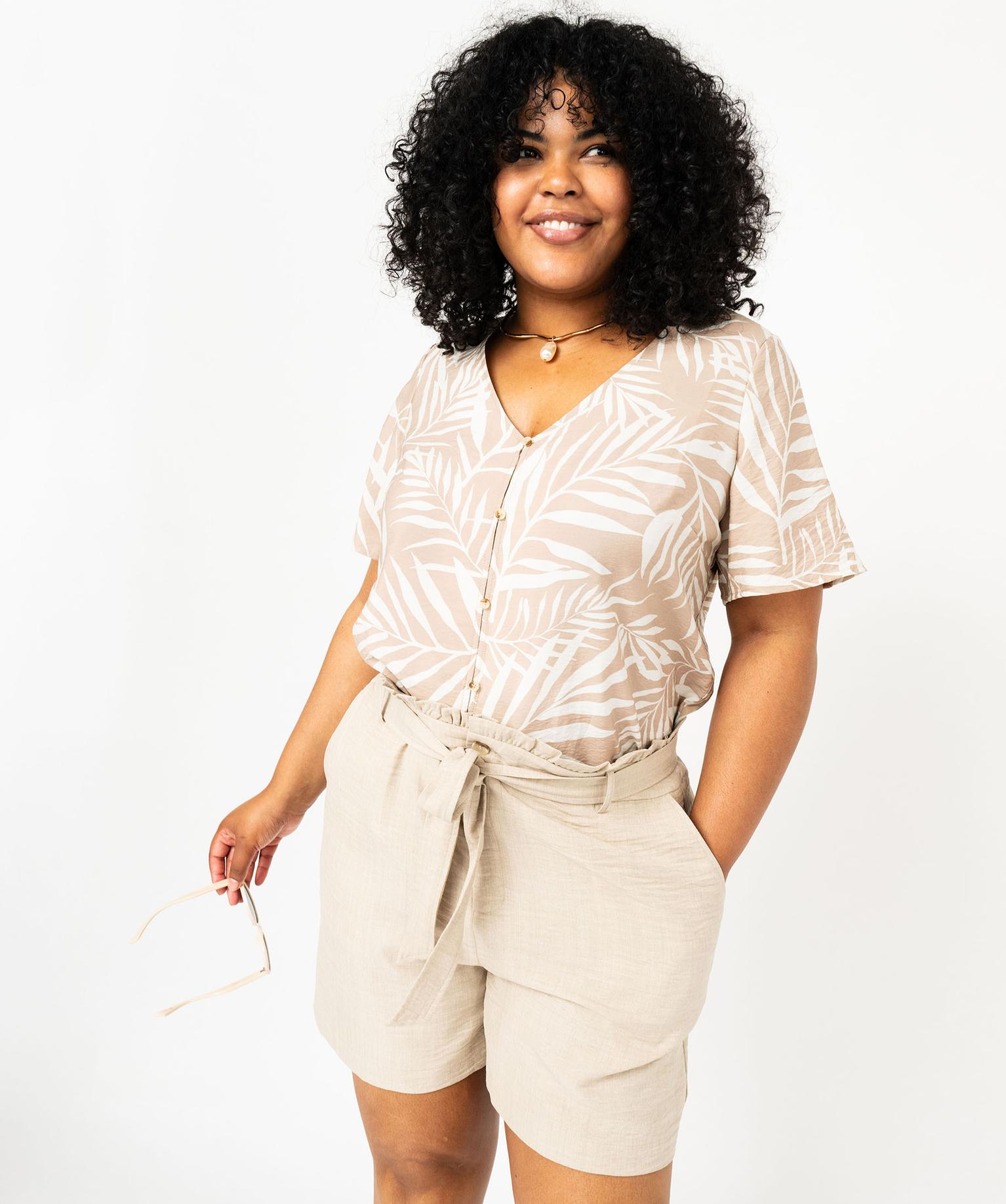 Blouse manches courtes fluide à col V et imprimé femme grande taille beige