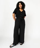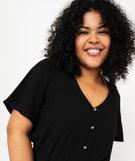 Blouse manches courtes fluide à col V femme grande taille noir