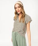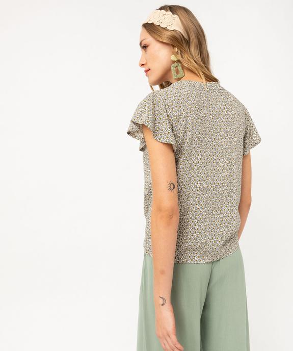 Blouse manches courtes imprimée à boutons femme vert vif