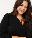 Laissez-vous séduire par cette blouse fluide. Féminine et polyvalente, elle est parfaite en toutes occasions. Ses manches longues bouffantes et sa couleur classique chic mettent en valeur votre silhouette avec élégance et confort. Confectionnée dans une maille fluide et extensible, cette blouse femme grande taille (46/48 au 54/56) offre légèreté et souplesse. Elle se marie facilement avec un jean pour une allure décontractée ou avec un pantalon de tailleur pour un look plus sophistiqué. Élastiques aux poignets, couture au milieu du dos, fronces sous le décolleté et encolure en V croisée à larges bords.