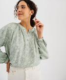 Blouse manches longues en viscose fleurie à col rond boutonné femme vert