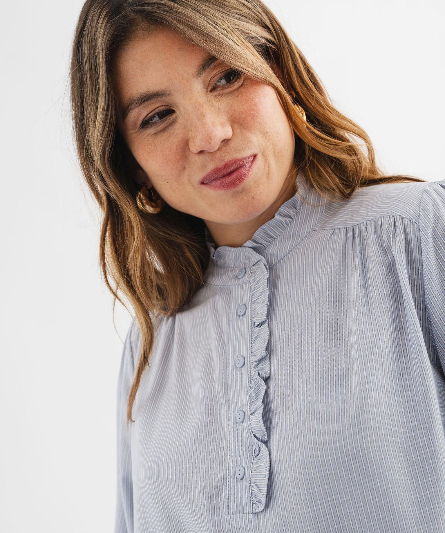Blouse rayée avec finitions froncées femme bleu