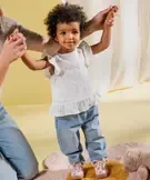 Confectionnée en coton et sublimée par une jolie broderie anglaise, cette blouse bébé fille se pare de délicats volants sur les épaules et à la base, pour une allure pleine de légèreté. Un modèle à la fois pratique et raffiné, fermé par de petits boutons dans le dos. Une blouse brodée, entièrement doublée, à la fois fraîche et élégante, idéale pour les beaux jours. Elle se porte au quotidien avec un jean ou avec un pantalon en lin lors des cérémonies estivales.