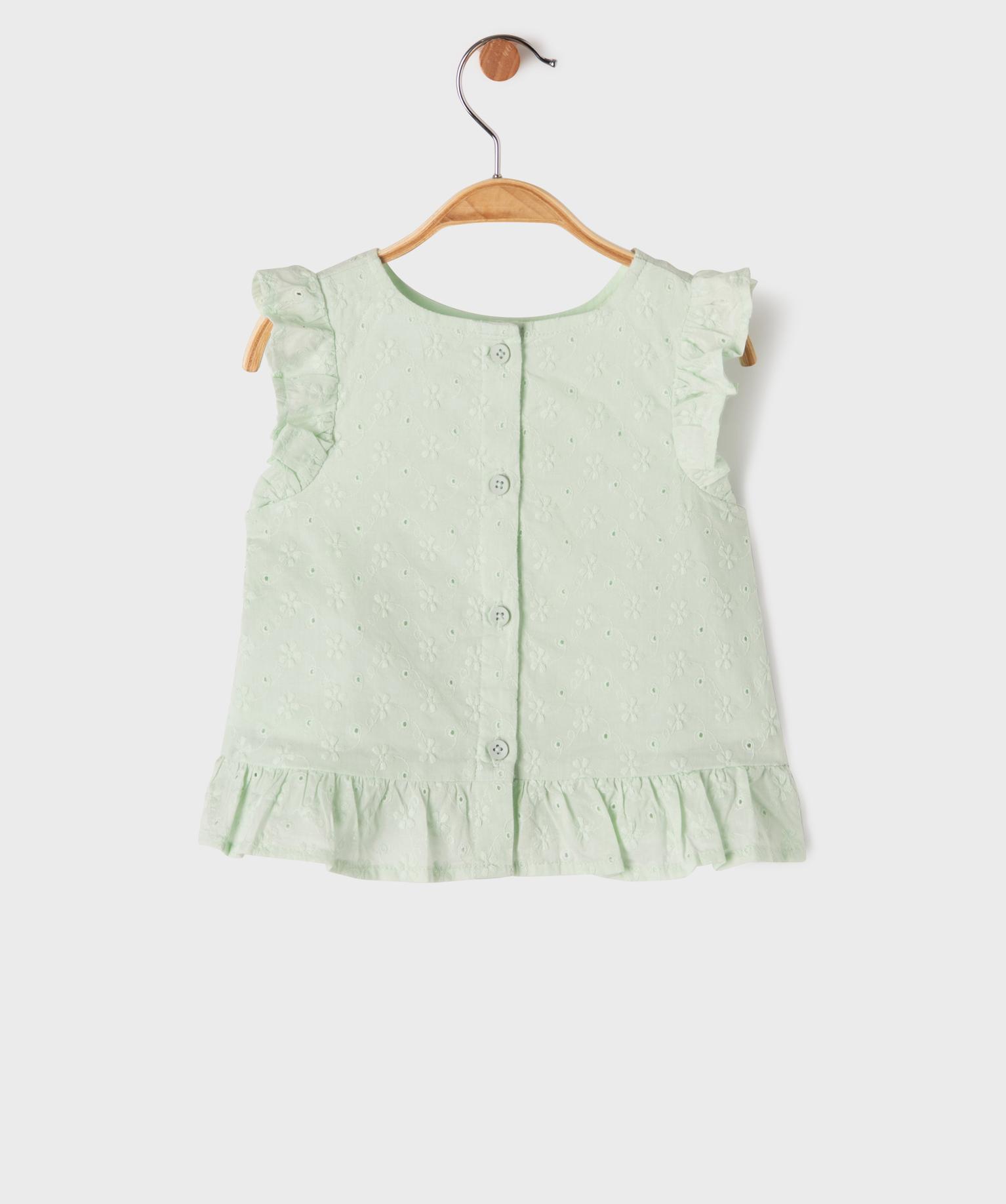 Blouse sans manches à motifs brodés bébé fille vert clair