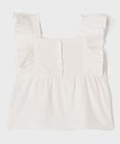 Offrez à votre enfant une touche de douceur avec cette blouse sans manches à volants. Son tissu en coton ultra doux et sa coupe ample assurent un confort optimal et une allure délicate. La blouse fille est dotée de volants encadrant le buste et subliment les épaules. Les épaules sont équipées d'élastiques froncés pour un joli maintien. On craque complètement pour la couture froncée sous poitrine, l’encolure carrée, devant et dos, et la jolie boutonnière au dos qui apportent une note raffinée. Une blouse pleine de charme, idéale pour des looks romantiques avec un bermuda en toile ou une jupe patineuse.