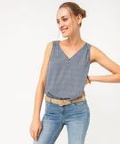 Blouse sans manches avec col V boutonné femme bleu