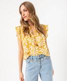 Blouse sans manches avec volants aux emmanchures femme jaune