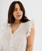 Blouse sans manches avec volants et broderies femme grande taille blanc