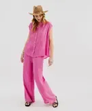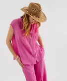 Cette jolie blouse sans manches, confectionnée en matière fluide subtilement froissée, vous promet une allure féminine et décontractée. Elle affiche une coupe oversize à la fois tendance et confortable, et se porte aussi bien sur un pantalon slim que rentrée dans une jupe. Cette blouse pour femme possède une encolure ronde légèrement froncée et se ferme par une rangée de boutons aux reflets nacrés.