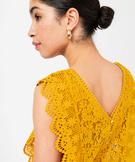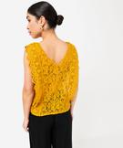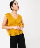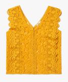 Blouse sans manches encolure V en dentelle et crochet femme jaune