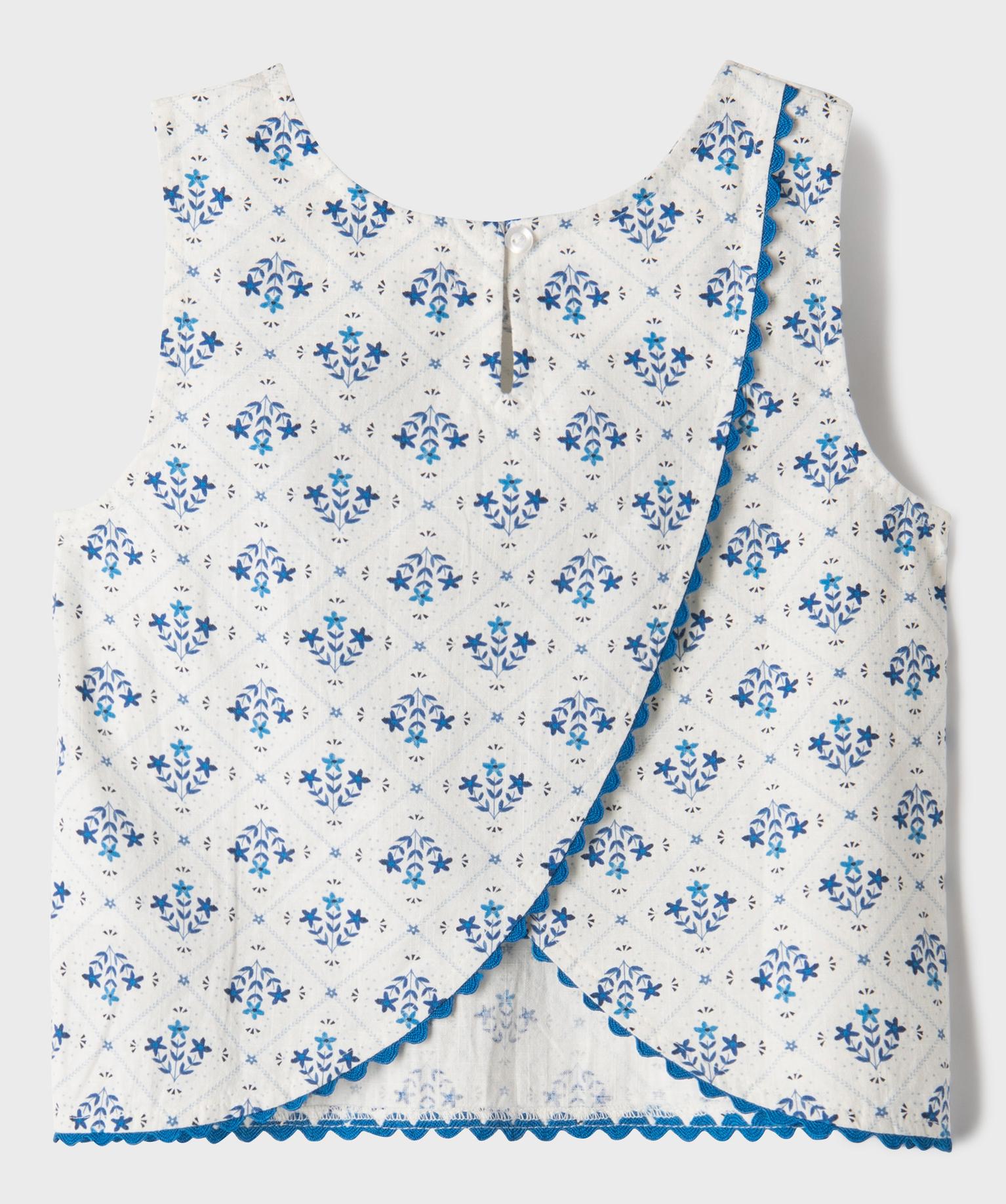 Blouse sans manches fleurie fille - LuluCastagnette bleu