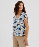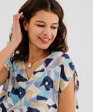 Optez pour une touche d’élégance avec cette blouse sans manches en viscose fluide. Son col V et ses épaules à froncer ajustables par des liens apportent féminité et raffinement. La blouse femme est décorée d'un imprimé graphique aux couleurs fraiches, pour une touche moderne et sophistiquée. Perles à l'extrémité des liens.