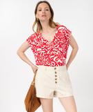 Blouse sans manches fluide en viscose imprimée femme rouge