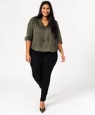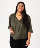 Blouse satinée à manches 3/4 femme grande taille kaki