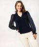 Une jolie chemise unie à l’allure ultra féminine illuminée par de fines rayures scintillantes aux manches. Des manches blousantes en voile subtilement transparentes. La blouse possède un joli décolleté en V très féminin rehaussé de fronces au niveau du cou. Cette blouse à manches longues est parfaite pour accompagner une jupe chic ou un pantalon de tailleur. Elle apporter une belle note de raffinement à votre jean préféré.