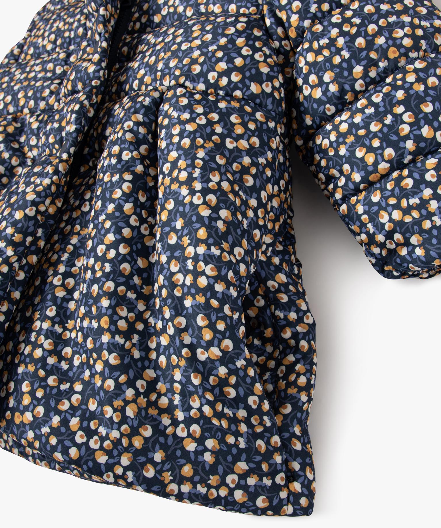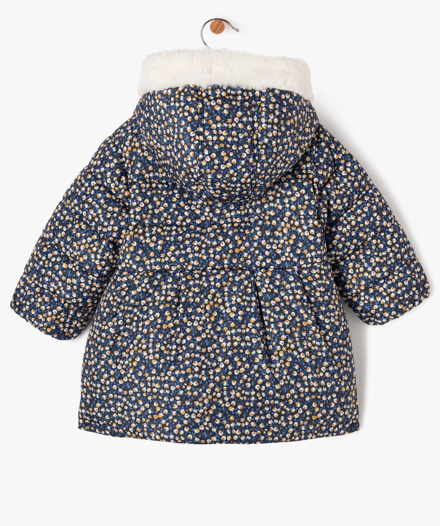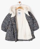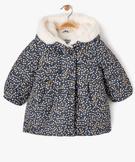 Offrez à votre petite fille un maximum de confort et de chaleur cet hiver grâce à cet épais manteau à capuche. Un manteau bébé fille parsemé de petites fleurs et doublé d’une maille peluche ultra douce sur le buste et à l’intérieur de la capuche. Ce blouson chaud se ferme à l’aide d’un zip sous patte fermée par boutons pression. Ses manches sont resserrées par un élastique aux poignets. Deux poches dissimulées dans les coutures. Un manteau facile à accorder avec l’ensemble du dressing des petites princesses.
