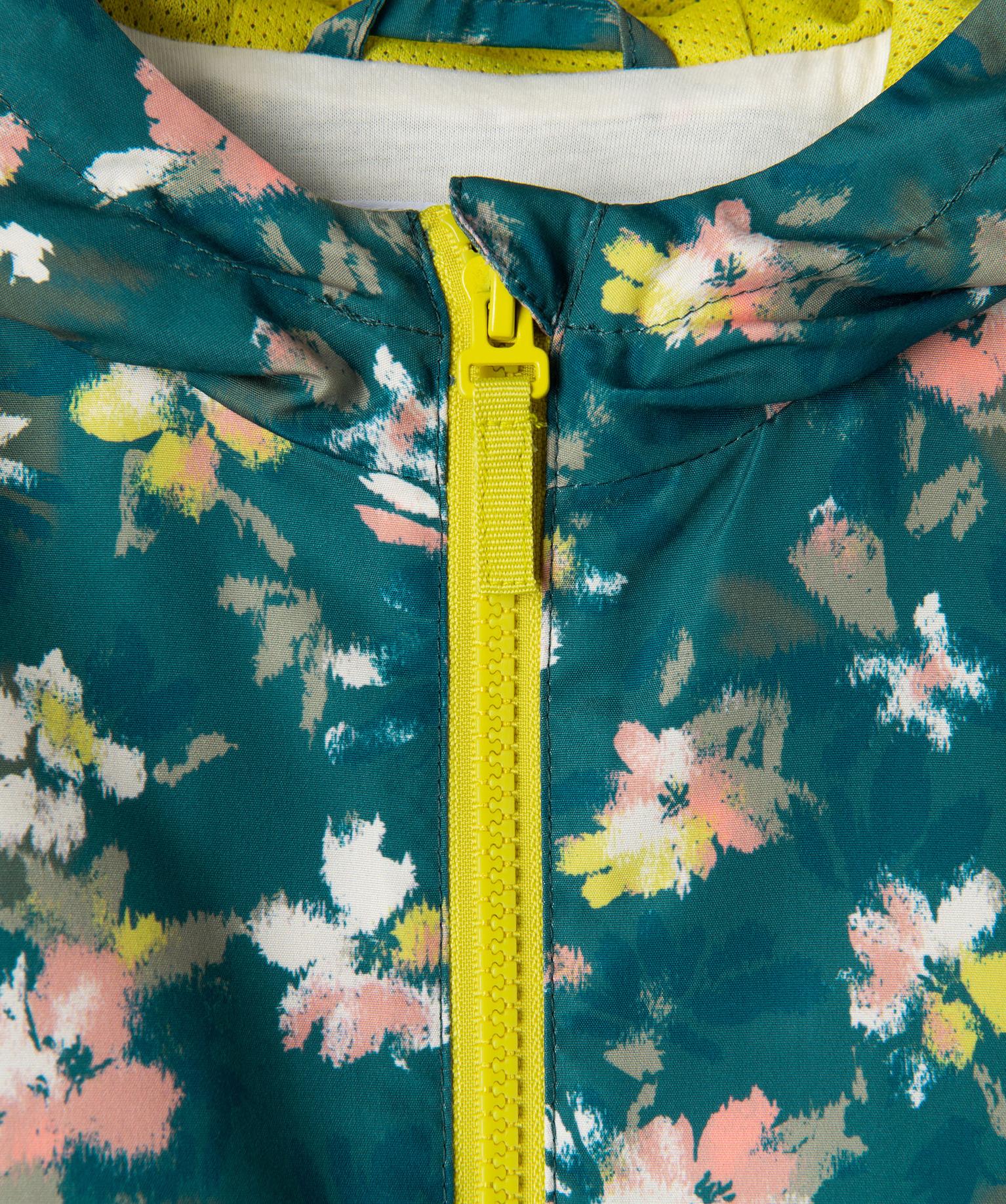 Ce blouson imperméable illuminera les journées pluvieuses des enfants avec ses couleurs vives et ses motifs fleuris. Un blouson léger, confectionné dans une matière déperlante résistant aux fines pluies et doté d’une doublure en jersey sur la partie buste. Ce blouson fille se ferme facilement par un zip et possède des finitions resserrées par des élastiques aux poignets et dans le bas. Deux poches raglan.