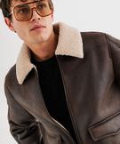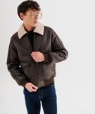 Blouson aviateur à col en fourrure imitation homme marron