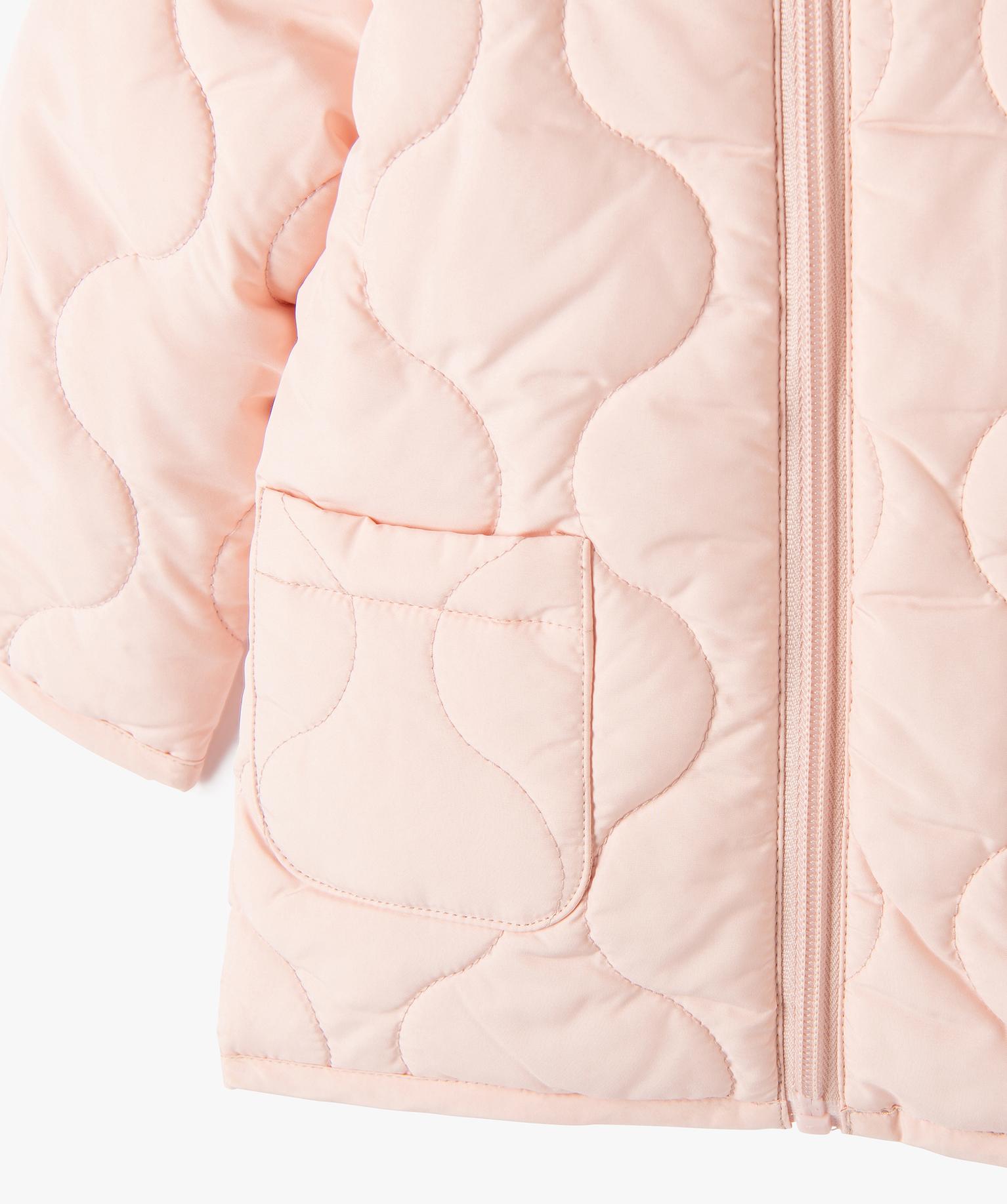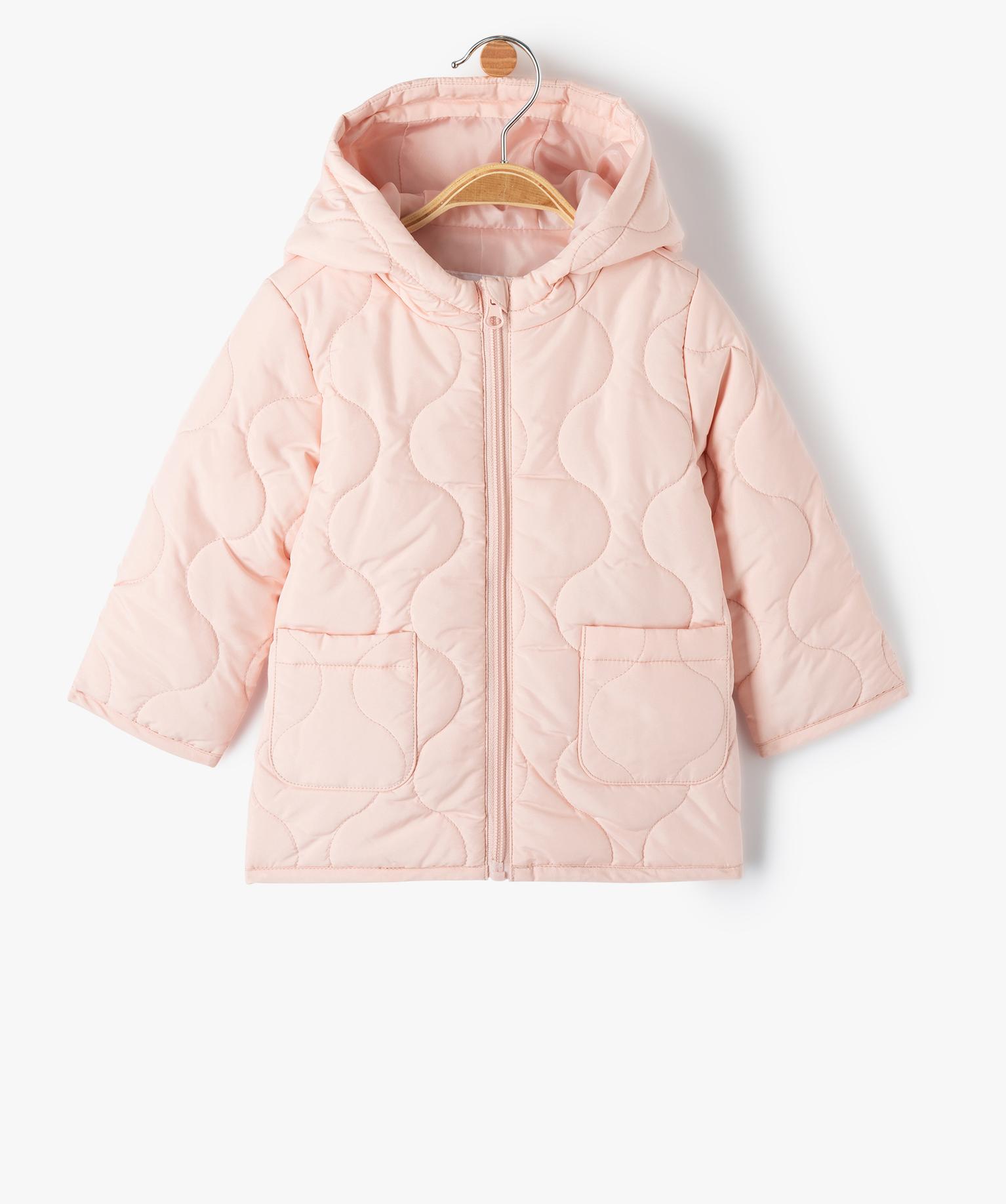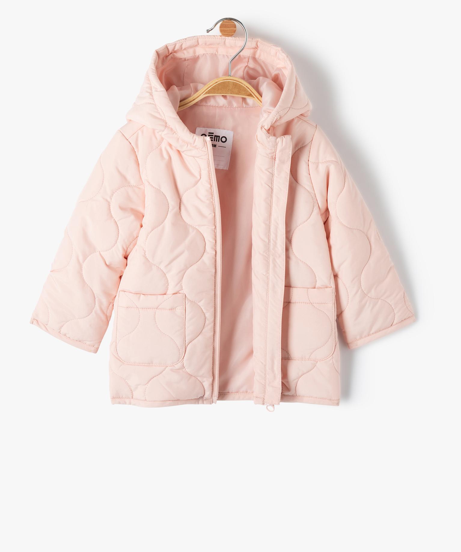 Un joli blouson qui promet un maximum de chaleur aux petites filles. Grâce à sa matière matelassée confectionnée en polyester recyclé et à sa capuche bien enveloppante, il ne laisse pas passer les courants d’air ! Ce blouson bébé fille se distingue par ses surpiqûres qui créent un matelassage original et ses deux poches plaquées sur l’avant. Il possède des finitions biais aux poignets et dans le bas. Ce blouson à capuche réchauffera tous les looks de la saison. Fermeture zippée. Bas légèrement arrondi.