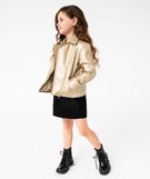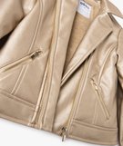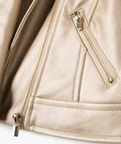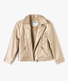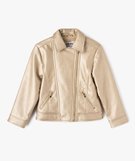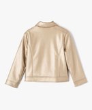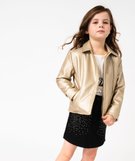 Gémo revisite le blouson biker dans un coloris scintillant qui illumine tous les looks des filles ! Un blouson en cuir imitation au coloris original, agrémenté de nombreuses surpiqûres et de fermetures zippées. Ce blouson fille surprend non seulement par son coloris glamour mais aussi par sa doublure en maille peluche si douce et si confortable ! Les filles ne voudront plus le quitter ! Deux poches zippées.