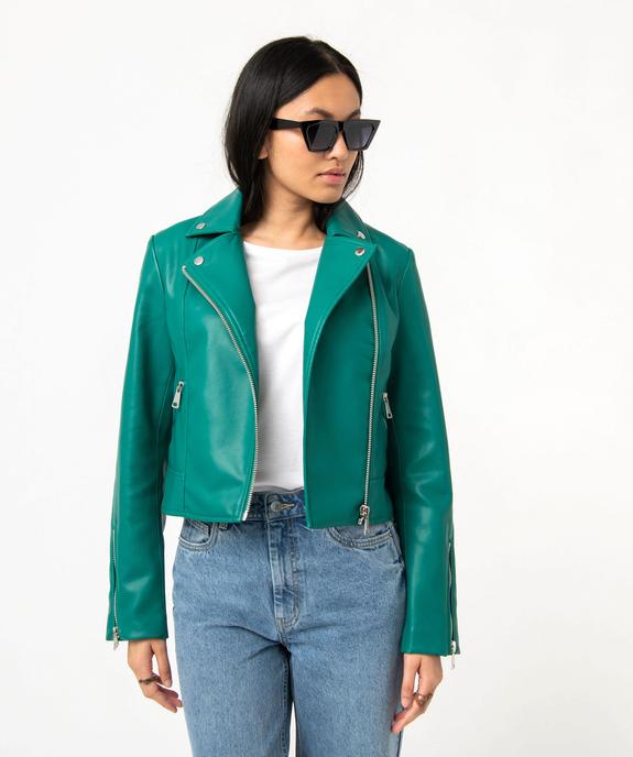 Cette saison, le blouson biker s’affiche dans un coloris pétillant pour ajouter une touche de fantaisie aux looks du quotidien. Un blouson femme confectionné dans une matière synthétique cuir imitation qui reste fidèle aux codes avec ses nombreuses fermetures zippées et ses boutons pression métalliques. Il affiche une coupe courte particulièrement avantageuse pour la silhouette. Une veste zippée qui apportera une touche de pep’s aux tenues sombres de la saison.