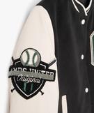Ce superbe blouson style teddy signé Camps United est le manteau idéal de l'intersaison ! En effet, la veste large est fabriqué dans une matière feutre épaisse, avec un fin garnissage matelassée en guise de doublure. Bimatière, elle présente des manches en matière synthétique cuir imitation. Le blouson fille affiche également une finition bord-côte à rayures et un grand motif bouclette et broderie sur la poitrine et sur la manche droite. Une création inspirée de l'univers des campus américains. Fermeture pressionnée pratique, poches passepoilées dans la matière des manches. Dos uni.