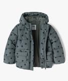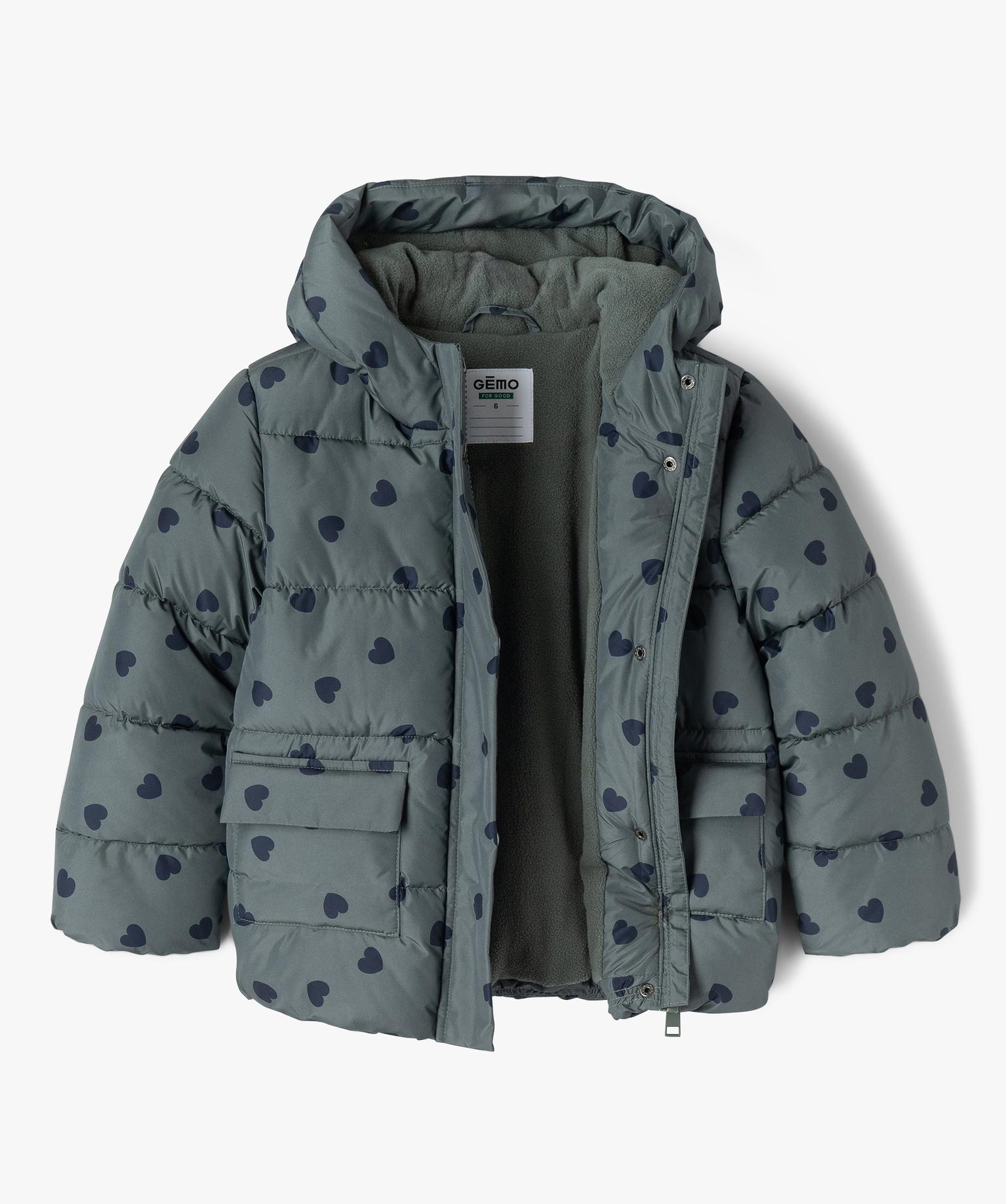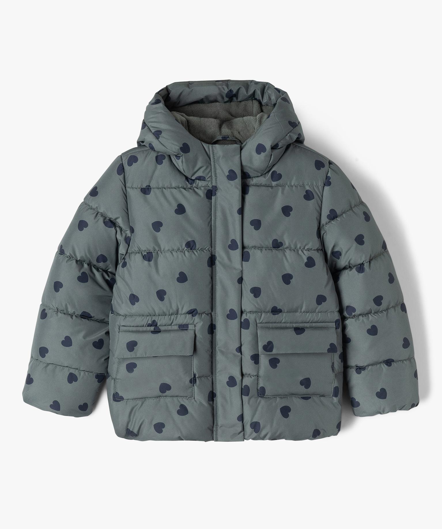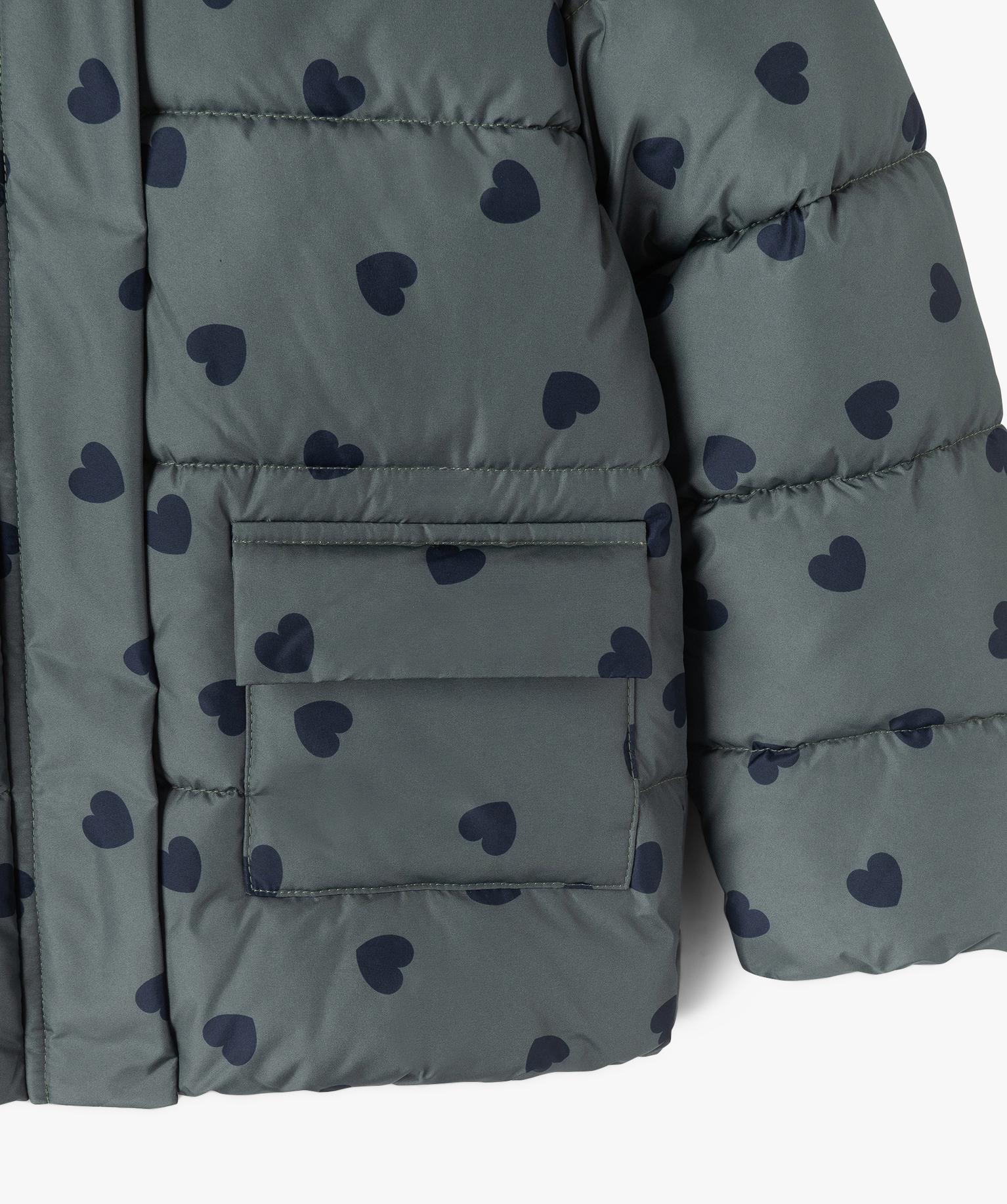 Blouson déperlant à capuche motifs coeurs doublé polaire fille vert