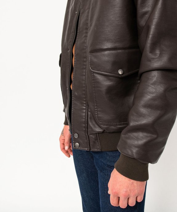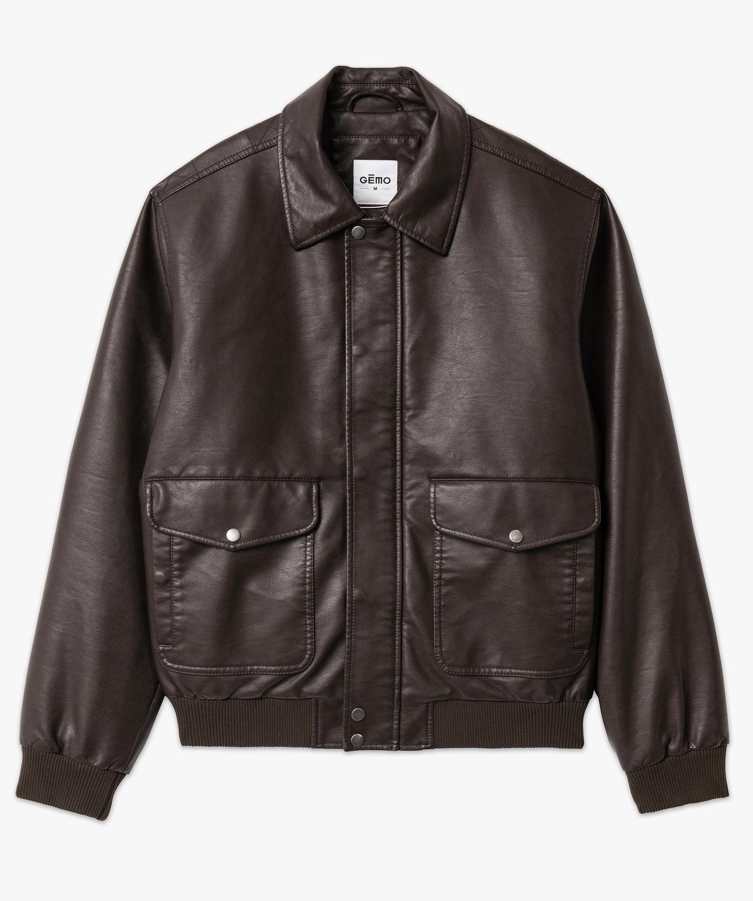 Blouson en cuir imitation avec larges poches homme marron