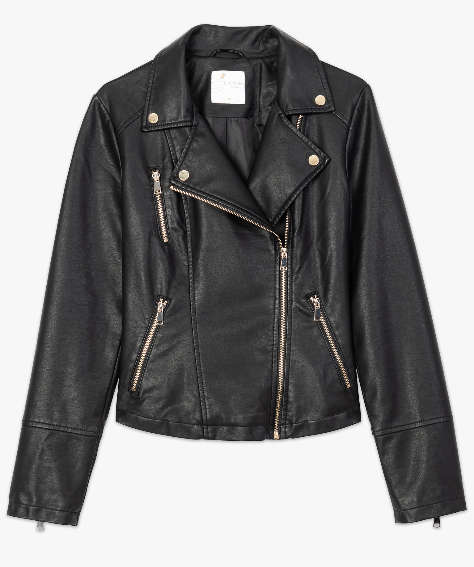 Si vous ne deviez garder qu’une veste dans votre garde-robe, ce serait celle-ci : le perfecto ! Stylé, branché, il apporte un vrai plus à votre tenue. Avec sa longueur à la taille et sa coupe droite, il se marie aussi bien avec une petite robe fleurie qu’un jean skinny enduit ! On aime la souplesse de sa matière.