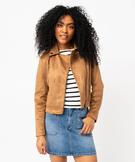 Gémo réinvente le blouson biker dans une version douce et féminine. Confectionné en suédine au coloris tendre, ce blouson femme est une à la fois élégante et audacieuse. Il emprunte les codes du blouson biker traditionnel avec sa coupe courte caractérisée par un zip de fermeture oblique, de nombreux zips et des boutons métalliques. Cette veste en suédine ajoute une touche de modernité à tous les looks du quotidien. Elle se porte avec un jean et des boots mais aussi avec un longue robe fleurie à laquelle elle ajoutera une touche tendance. Deux poches zippées. Poignets zippés.