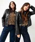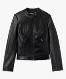 Le blouson biker est la pièce indispensable pour twister tous les looks et leur apporter une touche rock. Ce blouson pour femme est confectionné dans une matière synthétique imitation cuir et entièrement doublé. Il est agrémenté de surpiqûres et de zips métalliques aux poignets et sur les poches. Cette veste courte, à la coupe légèrement cintrée, possède un col rond fermé par un bouton pression. Elle accompagne tous les jeans du dressing mais se porte aussi avec une robe imprimée et une paire de boots à boucles.