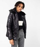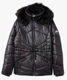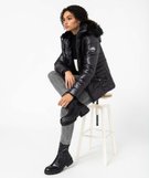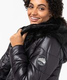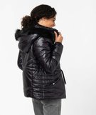 Blouson femme matelassé avec capuche doublée peluche noir