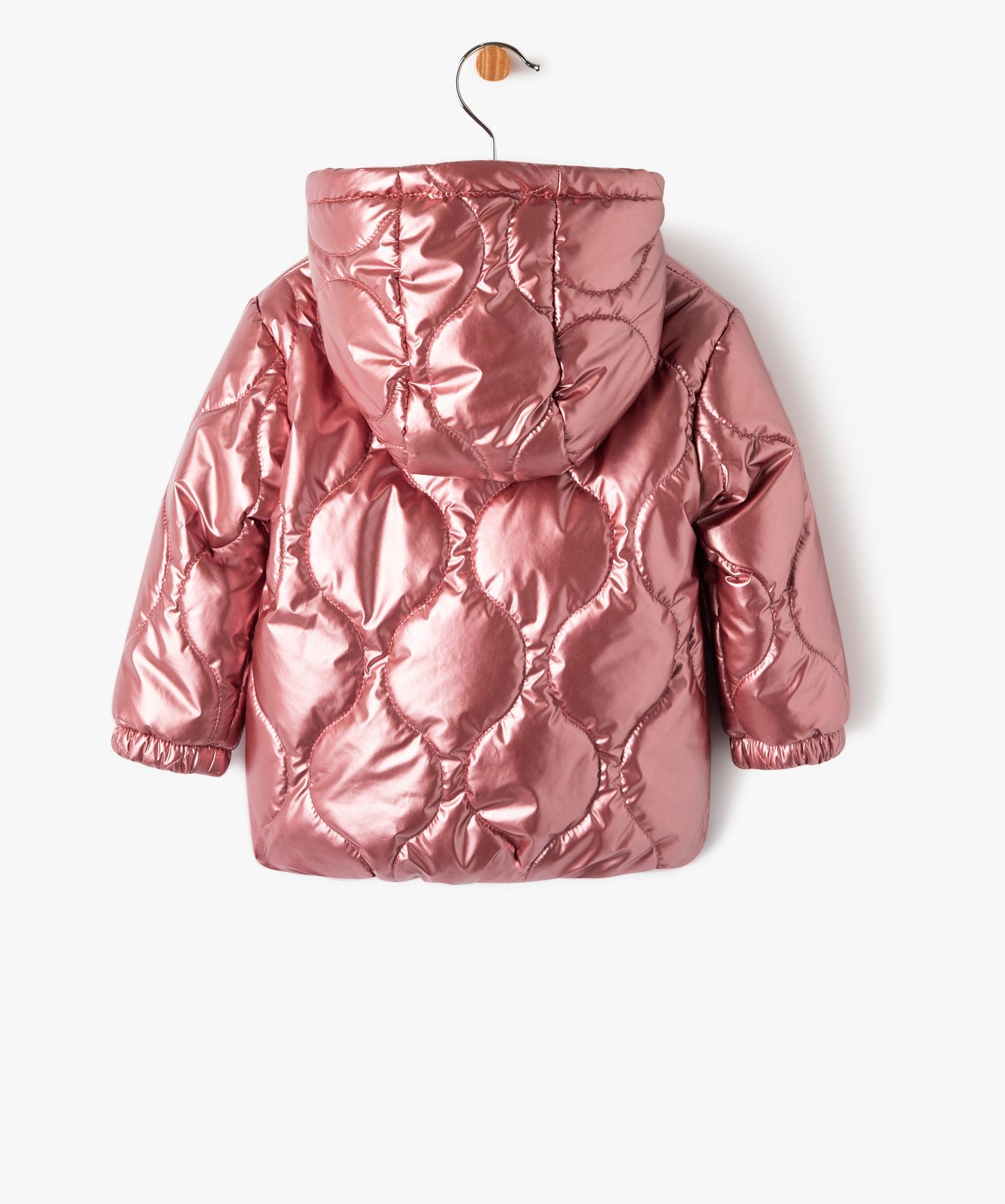Renversant, le blouson métalissé brillant ! Parents et enfants vont craquer assurément ! Cette doudoune n'est pas qu'originale, elle est aussi parfaite pour l'hiver : capuche, doublure polaire extra chaude, matelassage rembourré et douillet. Une doudoune bébé fille à porter toute la saison ! Le blouson se ferme à l'aide d'un zip avec patte de protection sous le menton. Un ours Lulu est brodé sur la poitrine. Les poignets sont élastiqués pour que le vent ne s'engouffre pas. 2 poches plaquées devant.