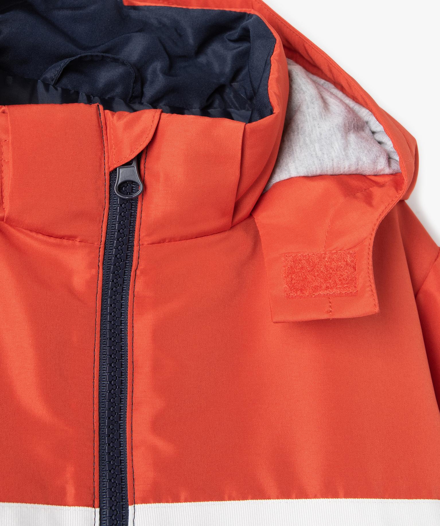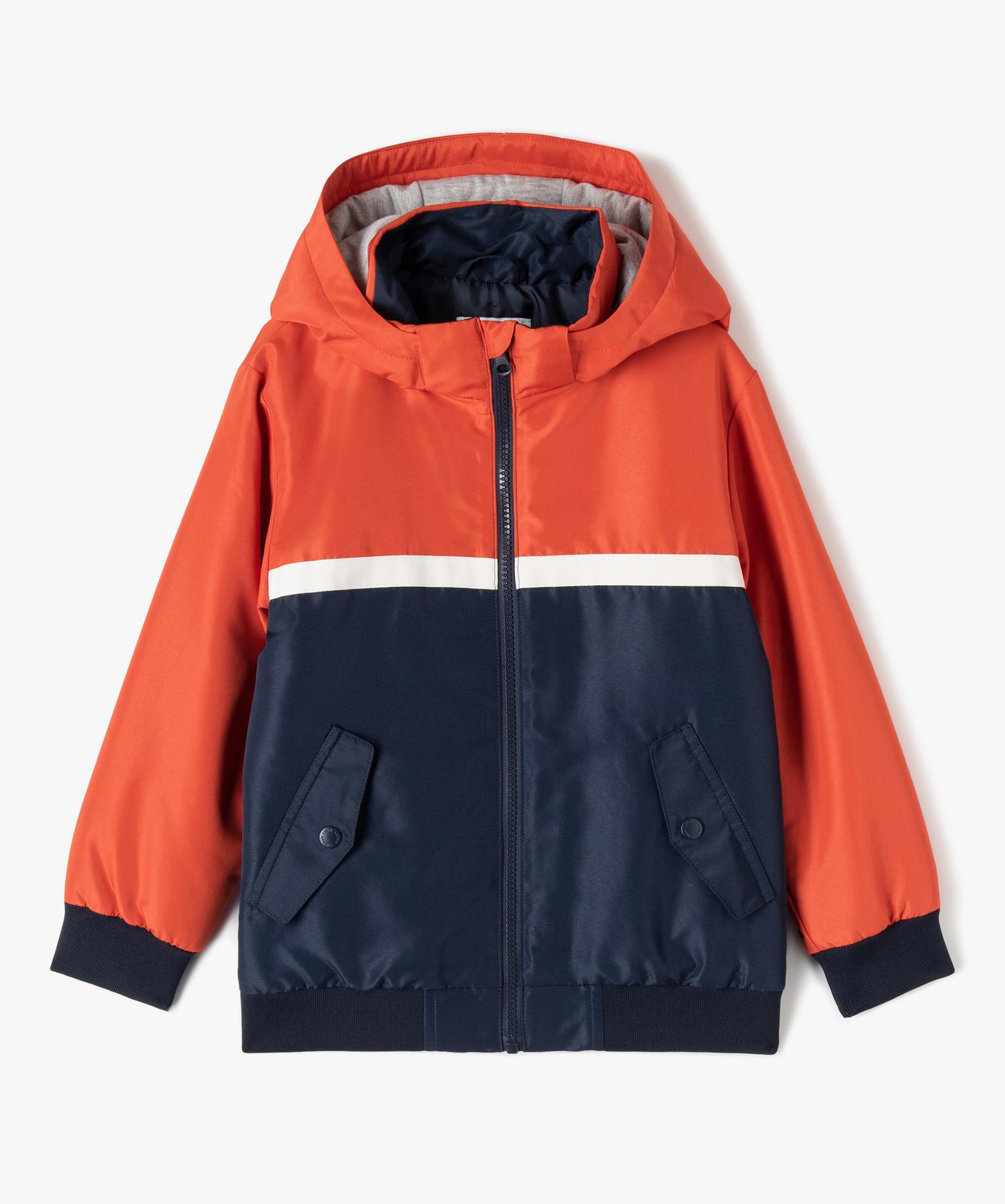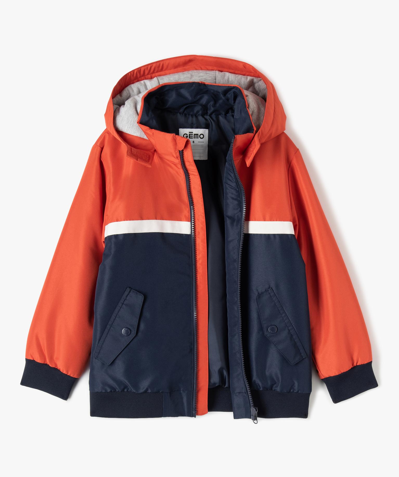 Un blouson déperlant indispensable pour entrer dans l’hiver et affronter la pluie. Ce blouson garçon affiche de nombreux détails pour plaire aux enfants, des coloris pétillants, une capuche doublée, une fermeture zippée et deux poches à rabat pressionné. Pour une bonne protection contre le vent, ce blouson est légèrement matelassé, il possède un col montant et des poignets resserrés par bords-côtes. Un blouson tricolore qui s’accordera avec tout le dressing.