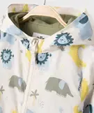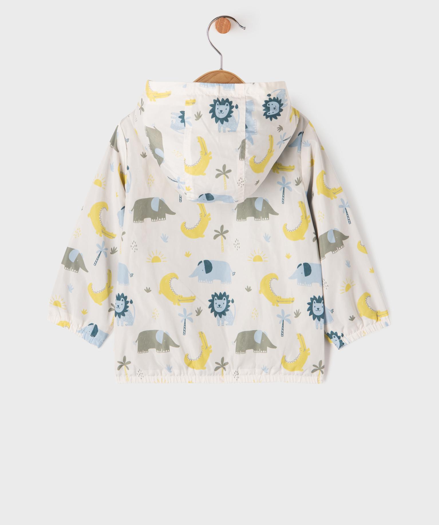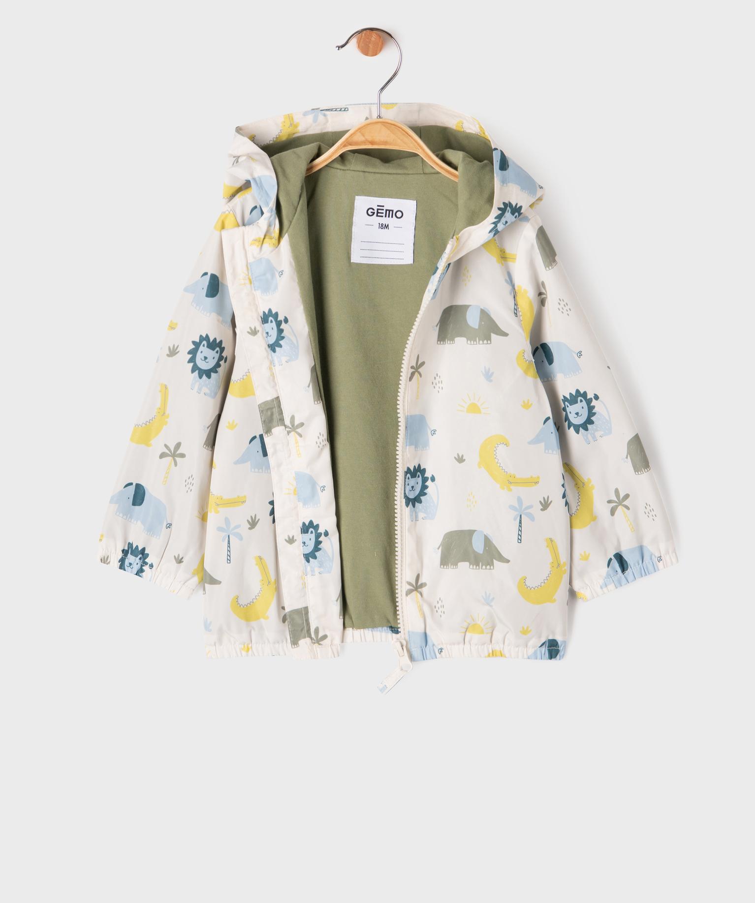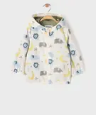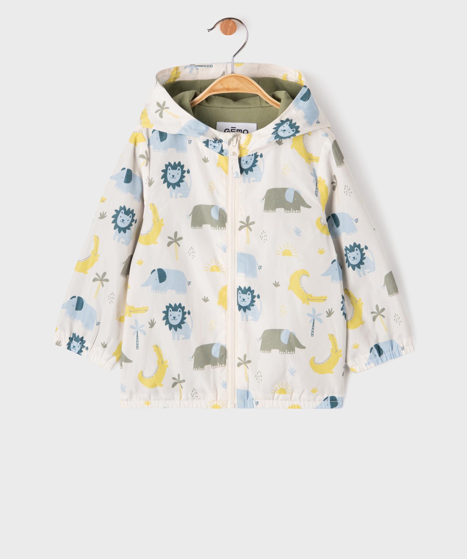 Ce blouson imperméable ajoutera de la bonne humeur aux jours de pluie avec ses adorables motifs inspirés de la savane parmi lesquels on retrouve des lions, des éléphants et des crocodiles ! Un blouson bébé garçon en matière déperlante qui laisse glisser la pluie, avec capuche et finitions élastiquées pour une protection optimale. Sa doublure en jersey jusque dans la capuche assure aux tout-petits un maximum de confort. Fermeture zippée.