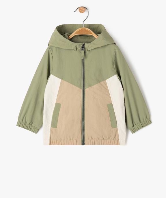 Confectionné en matière déperlante avec doublure en coton, ce blouson à capuche protègera efficacement votre enfant contre la pluie. Ce blouson bébé garçon est composé de différents empiècements de couleurs différentes, permettant de s’accorder facilement avec l’ensemble du dressing. Ce coupe-vent possède un col montant et des finitions élastiquées aux poignets et dans le bas pour assurer une protection optimale contre les intempéries. Deux poches raglan. Fermeture zippée.