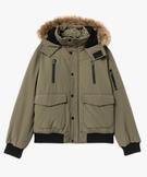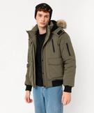 Blouson matelassé à capuche bordée de fourrure imitation homme kaki